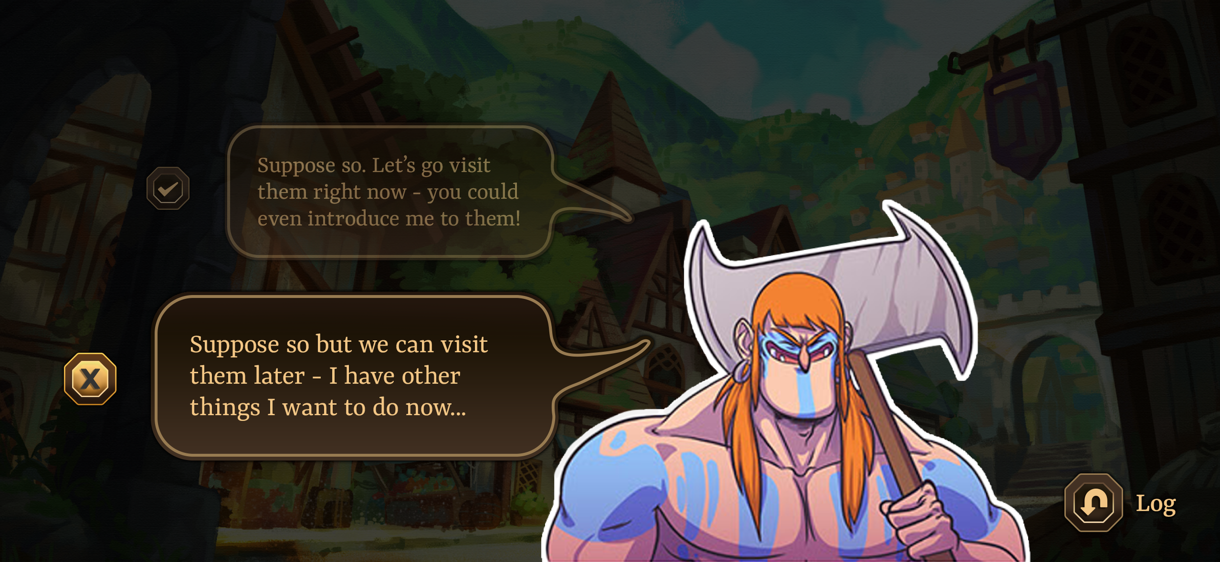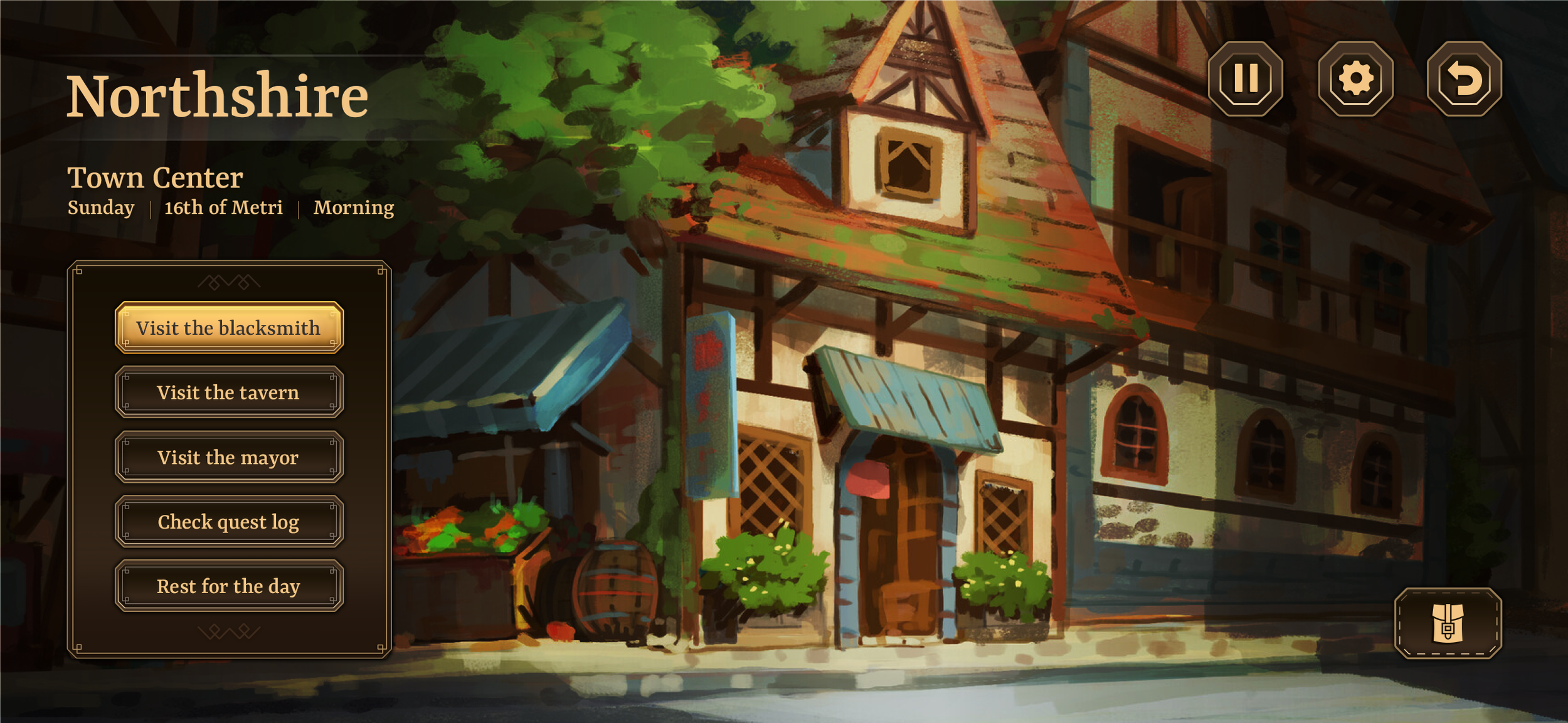 Visiting a village. You can check the different locations, access your quest log or rest.